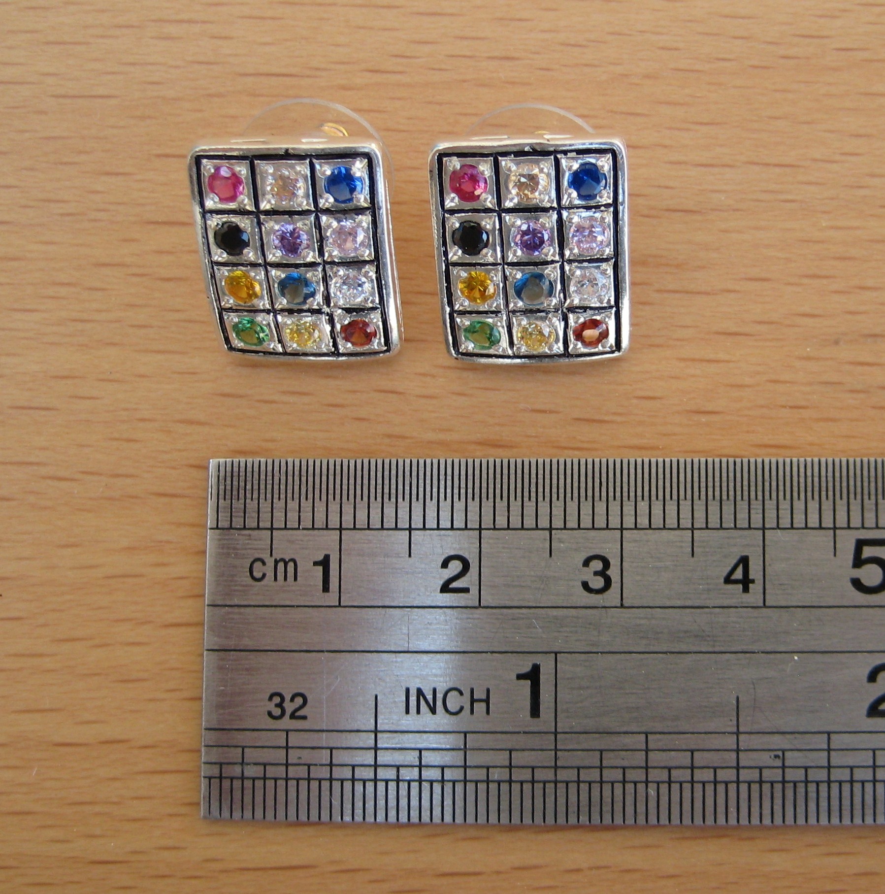 Top Quality diamond cut cubic ziirconium hand set in soild sterling silver. Width: 1/2" Height: 6/8"