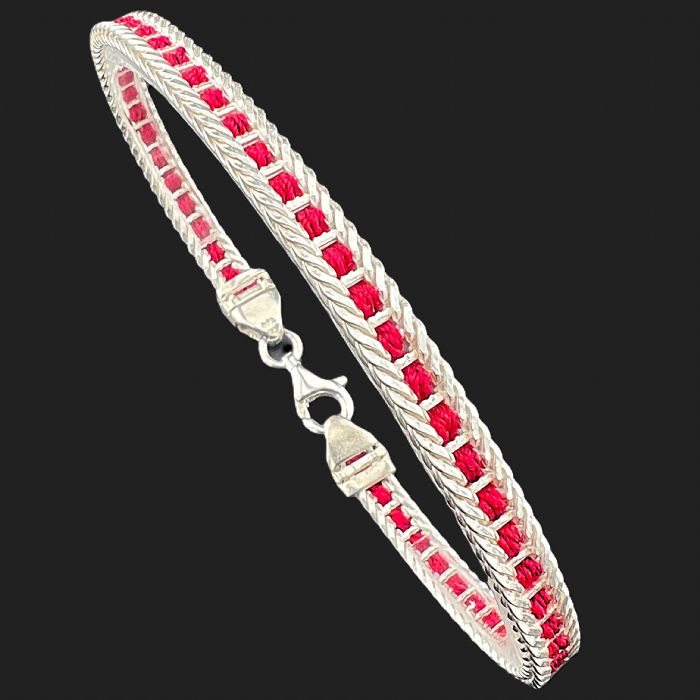 Red thread woven through solid sterling silver. Available in all lengths from baby size and up.