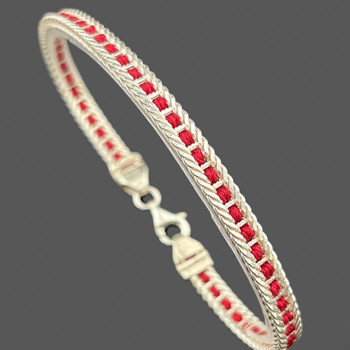 Red thread woven through solid sterling silver. Available in all lengths from baby size and up.