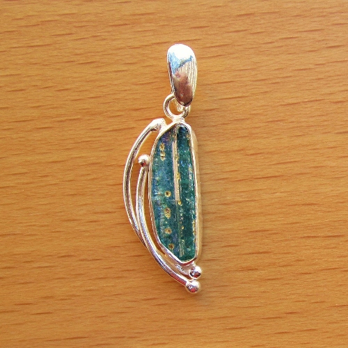 Genuine ancient Roman glass from the Holyland set in sterling silver. One of a kind. Comes with a certificate of authenticity.